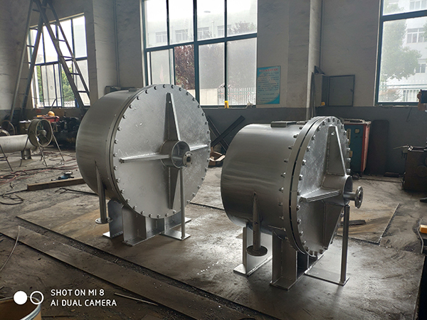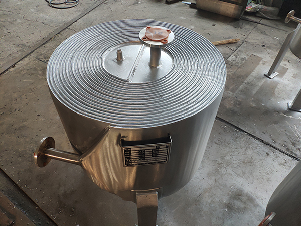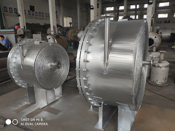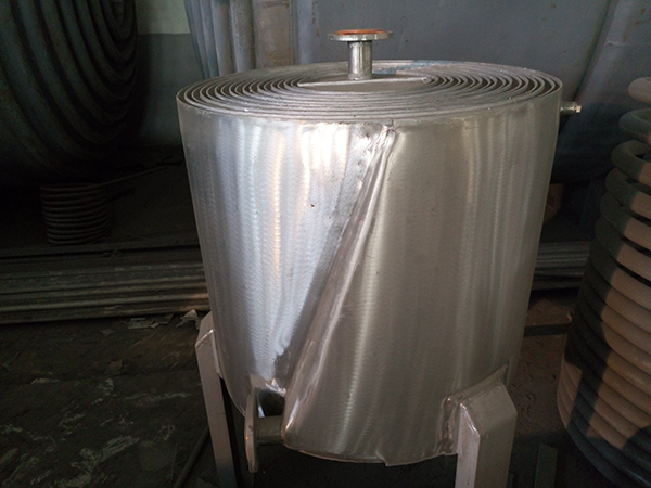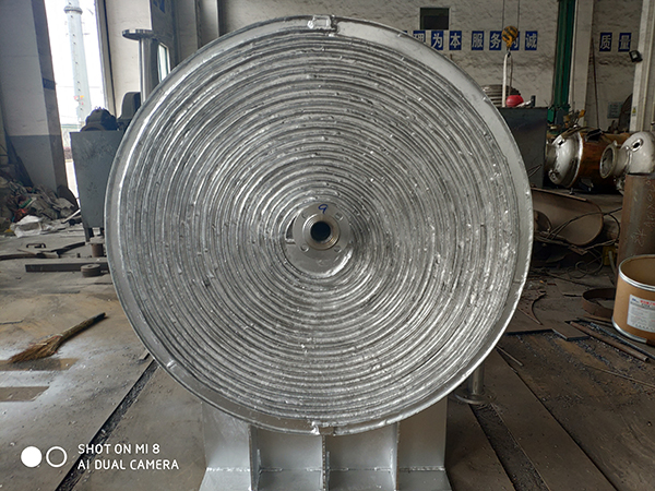 2、在殼體上的接管采用切向結(jié)構(gòu),局部阻力小,由于螺旋通道的曲率是均勻的,液體在設(shè)備內(nèi)流動(dòng)沒有大的轉(zhuǎn)向,總的阻力小,因而可提高設(shè)計(jì)流速使之具備較高的傳熱能力。